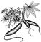 Маниок съедобный: побег, лист и молодые корневые клубни.