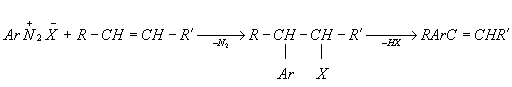 Меервейна реакция, взаимодействие арилдиазонийгалогенидов с непредельными соединениями, приводящее к продуктам присоединения арильного радикала и атома галогена по кратной связи; эти продукты часто уже в условиях реакции теряют галогеноводород: