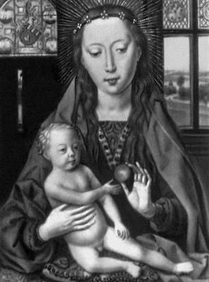 Х. Мемлинг. «Богоматерь с донатором Мартином ван Ньивенхове». Правая часть диптиха. 1487. Музей Х. Мемлинга. Брюгге.