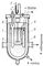 Рис. 2. Схема изотопной лампы с 86Kr и сосуда для охлаждения её стенок до 63К: 1 — баллон лампы; 2 — катод лампы; 3 — капилляр, в котором происходит свечение; 4 — сосуд Дьюара; 5 — герметически закрывающаяся металлическая камера; 6 — термопара для контроля температуры; 7 — манометр.