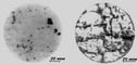 Рис. 9. Микрофотографии нетравленого шлифа металла, снятые металлографическим микроскопом: слева — в светлом поле; справа — с фазово-контрастным устройством.