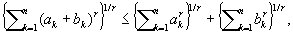 где ak и bk (k = 1, 2,..., n) — неотрицательные числа и r > 1. М. н. имеет аналоги для бесконечных рядов и интегралов; оно было установлено Г. Минковским в 1896 и выражает тот факт, что в n-мерном пространстве, для которого расстояние между точками x = (x1, x2, ..., xn) и y = (y1, y2, ..., yn) имеет величину