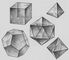 Правильные многогранники (тела Платона) — такие выпуклые М., все грани которых суть конгруэнтные правильные многоугольники. Все многогранные углы правильного М. правильные и равные. Как это следует уже из подсчёта суммы плоских углов при вершине, выпуклых правильных М. не больше пяти. Указанным ниже путём можно доказать, что существуют именно пять правильных М. (это доказал Евклид). Они — правильные тетраэдр, куб, октаэдр, додекаэдр и икосаэдр .