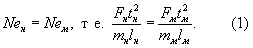 В большинстве случаев модель изготовляется из того же материала, что и натура. Тогда rм = rн, Ем = Ен и второе условие даёт gмlм = gнlн. Когда весовые нагрузки существенны, для выполнения этого условия прибегают к т. н. центробежному моделированию, т. е. помещают модель в центробежную машину, где искусственно создаётся приближённо однородное силовое поле, позволяющее получить gм > gн и сделать lм < lн. Если же основными являются другие нагрузки, а весом конструкции и, следовательно, учётом её удельного веса g = rg можно пренебречь, то приближённое М. ф. осуществляют при gм = gн = g, удовлетворяя лишь последнему из соотношений (3), которое даёт Fм/l2м = Fн/l2н, следовательно, нагрузки на модель должны быть пропорциональны квадрату её линейных размеров. Тогда модель будет подобна натуре и если, например, модель разрушается при нагрузке Fкр, то натура разрушается при нагрузке Fкрlн/lм. Неучёт в этом случае весовых нагрузок даёт следующее. Поскольку эти нагрузки имеют значения gl3, а последнее из условий (3) требует пропорциональности нагрузок Р, то при lм < lн весовая нагрузка на модель будет меньше требуемой этим условием, т. е. М. ф. не будет полным и модель, как недогруженная, будет прочнее натуры. Это обстоятельство тоже можно учесть или теоретическим расчётом или дополнительными экспериментами.