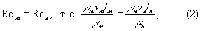 Создаваемые для гидроаэродинамического моделирования экспериментальные установки и сами модели должны обеспечивать равенство соответствующих критериев подобия у модели и натуры. Обычно это удаётся сделать в случаях, когда для течения в силу его особенностей сохраняется лишь один критерий подобия. Так, при М. ф. стационарного течения несжимаемой вязкой жидкости (газа) определяющим будет параметр Re и необходимо выполнить одно условие