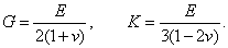 В случае однородного изотропного тела М. у. одинаковы по всем направлениям. Четыре постоянные величины Е, G, K и n связаны между собой двумя соотношениями: