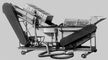 Моечная овощная машина: 1 — загрузочный ковш; 2 — моечный барабан; 3 — шприцевое устройство; 4 — транспортёр; 5 — электродвигатель; 6 — насос; 7 — водяная ванна.