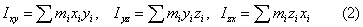 или же соответствующими объёмными интегралами. Эти величины являются характеристиками динамической неуравновешенности масс. Например, при вращении тела вокруг оси z от значений Ixz и Iyz зависят силы давления на подшипники, в которых закреплена ось.