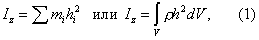 где mi — массы точек тела, hi — их расстояния от оси z, r — массовая плотность, V — объём тела. Величина Iz является мерой инертности тела при его вращении вокруг оси (см. Вращательное движение). Осевой М. и. можно также выразить через линейную величину k, называемую радиусом инерции, по формуле Iz = Mk2, где М — масса тела. Размерность М. и. — L2M; единицы измерения — кг×м2 или г×см2.