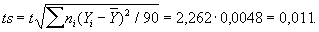 Пример. Для оценки точности одного из методов химического анализа этим методом определялась концентрация CaO в десяти эталонных пробах заранее известного состава. Результаты равноточных наблюдений указаны в таблице (i — номер эксперимента, ti — истинная концентрация CaO, Ti — концентрация CaO. определённая в результате химического анализа, Yi = Ti - ti — ошибка химического анализа):