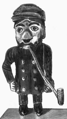 Народная скульптура. Скворечник в виде фигуры курильщика. Дерево, роспись. Московская область. 19 в. Исторический музей. Москва.