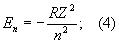 Уровни энергии А. водорода и водородоподобных ионов. Энергия одноэлектронного А. (без учёта спина электрона) равна