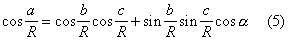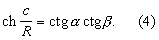 где sh, ch — гиперболические синус и косинус (см. Гиперболические функции), a, b, c — стороны треугольника, a, b, g — противолежащие им углы, R — постоянная, определяемая выбором масштаба; для прямоугольного треугольника (с гипотенузой с и прямым углом g) имеет место, например, равенство: