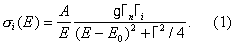 Здесь Г = Гn + Гg + Гa +...— полная ширина нейтронного резонанса, равная ширине резонансного пика на половине высоты, g — статистический фактор, зависящий от спина и чётности резонансного состояния ядра.