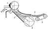 Рис. 1. Схема устройства для получения холста механическим методом: 1 — съёмный барабан чесальной машины; 2 — прочёс; 3 — раскладчик прочёса; 4 — сформированный холст.