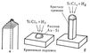 Н. к. тугоплавких соединений, помимо высокой температуры плавления и прочности, имеют высокий модуль упругости, химически инертны по отношению ко многим металлическим, полимерным и керамическим материалам до весьма высоких температур. В Н. к., в отличие от поликристаллических волокон, не могут идти процессы рекристаллизации, обычно вызывающие резкое падение прочности при высоких температурах. Известно большое число методов получения Н. к.: физическое испарение с последующей конденсацией, осаждение из газовой фазы при участии химических реакций, кристаллизация из растворов, направленная кристаллизация эвтектических сплавов, выращивание на пористых мембранах и др. Н. к. тугоплавких металлов и соединений обычно получают методом осаждения из газовой фазы в высокотемпературных печах периодического, полунепрерывного или непрерывного действия. На рис. 2 показаны возможные схемы роста Н. к. Наиболее важные направления в применении Н. к. — реализация их высоких прочностных свойств в композиционных материалах, а также использование их высокой тепловой и абразивной стойкости.
