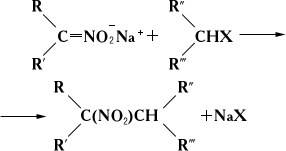 (X — атом галогена). Направление реакции зависит как от структуры соли, так и от природы алкилирующего агента. При действии на Н. концентрированных кислот получаются карбоновые кислоты. Алифатические Н. легко конденсируются с альдегидами и кетонами с образованием нитроспиртов, дегидратация которых приводит к нитроолефинам. Эти реакции широко используют в лабораторной практике. Нитропарафины хорошо растворяют различные органические соединения. См. также Нитрометан, Нитроформ, Тетранитрометан.