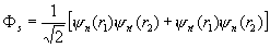 где Ф (r1, r2) — функция от координат r1, r2 электронов, а c(s1, s2) — от проекции их спинов s1, s2 на некоторое направление. Т. к. электроны являются фермионами, полная волновая функция y должна быть антисимметричной. Если суммарный спин 5 обоих электронов равен нулю (спины антипараллельны — парагелий), то спиновая функция c антисимметрична относительно перестановки спиновых переменных и, следовательно, координатная функция Ф должна быть симметрична относительно перестановки координат электронов. Если же полный спин системы равен 1 (спины параллельны — ортогелий), то спиновая функция симметрична, а координатная — антисимметрична. Обозначая через yп (r1), yп' (r2) волновые функции отдельных электронов в атоме гелия (индексы n, n' означают набор квантовых чисел, определяющих состояние электрона в атоме), можно, пренебрегая сначала взаимодействием между электронами, записать координатную часть волновой функции в виде: