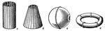 Рис. 1. Оболочки различной формы: а — цилиндрическая оболочка кругового сечения; б — коническая; в — сферическая; г — тороидальная.