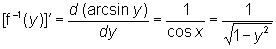 (формула дифференцирования О. ф.). Так, для —p/2 < х < p/2, у = f (x) = sin х непрерывна и монотонна, f’(x) = cos х ¹ 0 и f- -1(y)= arc sin у (—1< y <1) дифференцируема, причём