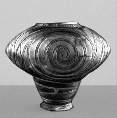 Глиняный сосуд из стоянки Ленковцы (Среднее Поднестровье, Украинская ССР). Глина. Начало 3-го тыс. до н. э. Исторический музей. Львов.