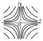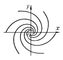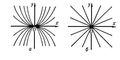 Именно, если l1 ¹ l2 и l1l2 > 0 или l1 = l2, то О. т. есть узел; все интегральные кривые, проходящие через точки достаточно малой окрестности узла, входят в него. Если l1 ¹ l2 и l1l2 < 0, то О. т. есть седло; в окрестности седла четыре интегральные кривые (сепаратрисы) входят в О. т., а между ними располагаются интегральные кривые типа гипербол. Если l1,2 = a ± i b, a ¹ 0 и b ¹ 0, то О. т. есть фокус; все интегральные кривые, проходящие через точки достаточно малой окрестности фокуса, представляют собой спирали с бесконечным числом витков в любой сколь угодно малой окрестности фокуса. Если, наконец, l1,2 = ± i b, b ¹ 0, то характер О. т. не определяется одними линейными членами в разложениях Р (х, у) и Q (x, у), как это имело место во всех перечисленных случаях; здесь О. т. может быть фокусом или центром, а может иметь и более сложный характер. В окрестности центра все интегральные кривые являются замкнутыми и содержат центр внутри себя. Так, например, точка (0, 0) является узлом для уравнений у ' = 2у/х (l1 = 1, l2 = 2; см. рис. 5, а) и y ' = у/х (l1 = l2 = 1; см. рис. 5, б), седлом для уравнения у' = —у/х (l1 = —1, l2 = 1; см. рис. 6), фокусом для уравнения у' = (х + у) / (х — у) (l1 = 1 — i, l2 = 1 + i; см. рис. 7) и центром для уравнения у' = —x / y (l1 = —i, l2 = i; см. рис. 8).