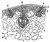 Поперечный разрез стебля ситника развесистого: а — эпидермис; б — ассимиляционная паренхима; в — проводящие пучки; г — рыхлая паренхима сердцевины.