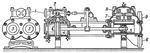 Паровой насос, агрегат, состоящий из паровой машины и поршневого насоса, поршни которых укреплены на противоположных концах общего штока. Применяется для перекачки воды, нефти и др. жидкостей, а на судах — для питания небольших котлов и осушения трюмов. Обычно П. н. выполняют горизонтальным и сдвоенным (рис.). Шток одной машины, совершая возвратно-поступательное движение, управляет золотником другой. Движение обеих пар поршней происходит одновременно, но в противоположных направлениях. При крайнем положении поршня одного из насосов поршень другого находится в среднем положении, что обеспечивает неразрывность струи перекачиваемой жидкости. П. н., состоящий из паровой турбины и центробежного насоса, называется турбонасосом.