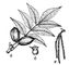 Пекан: а — ветвь с плодами; б — пестичный цветок; в — серёжки тычиночных цветков.