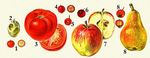 Cинкарпные плоды: 1—2 — верхняя синкарпная ягода (1 — ландыш, 2 — виноград, 3 — томат); 4 — нижняя синкарпная костянка (бузина); 5—6 — нижняя синкарпная ягода (5 — жимолость, 6 — клюква); 7—9 — яблоко (7 — яблоко, 8 — боярышник, 9 — груша).