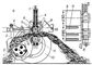 Прицепная плющилка: 1 — пружинные пальцы; 2 — подборщик; 3 — тяги; 4 — рычаги; 5 — направляющие; 6 и 11 — плющильные вальцы; 7 — регулировочный болт; 8 — пружины; 9 — чистик; 10 — рама; 12 — опорные пневматические колёса; а — технологическая схема; б — плющильные вальцы.