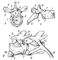 Грудной позвонок человека: А — сверху, Б — сбоку; В — два грудных позвонка примитивного пресмыкающегося; 1 — тело позвонка; 2 — фасетка для бугорка ребра на поперечном отростке; 3 — поперечный отросток; 4 — верхний (передний) суставной отросток; 5 — верхний остистый отросток; 6 — дуга позвонка; 7 — фасетка для головки ребра; 8 — спинномозговой канал; 9 — задний (нижний) суставной отросток; 10 — гипоцентр; 11 — головка ребра; 12 — бугорок ребра; 13 — ребро.