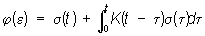 где K (t - t) т. н. ядро последействия, которое характеризует, в какой мере в момент времени t ощущается влияние (последействие) на деформацию единичного напряжения, действовавшего в течение единичного промежутка времени в более ранний момент t. Т. к. напряжение действует и в др. моменты времени, то суммарное последействие учитывается интегральным членом. Теория наследственности определяет полную деформацию и даёт качественное описание некоторых более сложных явлений (например, эффекта обратной П.).