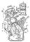 Рис. 1. Поперечный разрез карбюраторного двигателя МЗМА-412: 1 — картер; 2 — коленчатый вал; 3 — шатун; 4 — поршневой палец; 5 — поршень; 6 — блок цилиндра; 7 — клапан; 8 — головка цилиндров; 9 — распределительный вал; 10 — коромысло; 11 — карбюратор; 12 — стартёр.