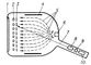 Схема потенциалоскопа с видимым изображением: 1 — люминесцентный экран; 2 — мишень в виде металлической мелкоструктурной сетки, покрытой слоем диэлектрика; 3 — коллекторная сетка; 4 — электрод, формирующий воспроизводящий пучок электронов; 5 — воспроизводящий пучок электронов, облучающий равномерно всю поверхность мишени; 6 — электронный прожектор воспроизводящего пучка; 7 — записывающий луч; 8 — отклоняющая система записывающего луча; 9 — электрод, к которому подводится записываемый сигнал; 10 — электронный прожектор записывающего луча.