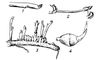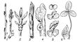 Рис. 5. Почки, служащие для вегетативного размножения: 1 — верхушечная почка на столоне картофеля; 2 — то же на усе земляники; 3 — придаточные почки на корне вязеля; 4 — зимующая подводная почка стрелолиста.