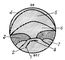 Карта относительного положения и размеров презумптивных зачатков на поверхности ранней гаструлы у земноводных. Вид со спинной стороны. Презумптивный материал: 1 — головной эктодермы; 2 — энтодермы; 3 — сомитов; 4 — эпидермиса; 5 — нервной пластинки; 6 — хорды; 7 — боковой мезодермы; 8 — спинная губа бластопора; ан — анимальный полюс; вег — вегетативный полюс.