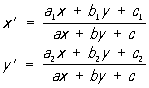 Из этой записи видно, что прямая ах + by + с = 0 переходит при этом П. в бесконечно удалённую прямую. См. также Проективное преобразование.