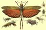 1 — южноафриканская саранча (Tropidaeris dux); 2 — сверчок муравьелюб (Myrmecophilus acervorus); 3 — триперст (Tridactylus tartarus); 4 — сверчок полевой (Gryllus campestris); 5 — медведка (Gryllotalpa gryllotalpa); 6 — саксетания (Saxetania cultricollis); 7 — крестовичка (Dociostaurus brenicollis).
