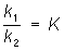 где k1 и k2 — соответствующие константы скоростей при данных условиях. В начальный момент, когда [С] и [D] равны нулю, u2 = 0, a u1 определяется начальными концентрациями А и В. По мере расходования этих веществ и образования веществ С и D u1 уменьшается, a u2 возрастает, затем они становятся равными (u1 = u2), т. е. устанавливается Р. х. Из равенства u1 = u2 следует, что