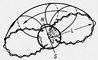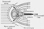 Структура радиационных поясов. При движении заряженной частицы в магнитном поле Земли её мгновенный центр вращения находится на одной и той же поверхности, получившей название магнитной оболочки (рис. 2). Магнитную оболочку характеризуют параметром L, его численное значение в случае дипольного поля (см. Диполь) равно расстоянию, выраженному в радиусах Земли, на которое отходит магнитная оболочка (в экваториальной плоскости диполя) от центра диполя. Для реального магнитного поля Земли (см. Земной магнетизм) параметр L приближённо сохраняет такой же простой смысл. Энергия частиц связана со значением параметра L; на оболочках с меньшими значениями L находятся частицы, обладающие большими энергиями. Это объясняется тем, что частицы высоких энергий могут быть удержаны лишь сильным магнитным полем, т. е. во внутренних областях магнитосферы. Обычно выделяют внутренний и внешний Р. п. 3., пояс протонов малых энергий (пояс кольцевого тока) и зону квазизахвата частиц (рис. 3), или авроральной радиации (по лат. названию полярных сияний). Внутренний радиационный пояс характеризуется наличием протонов высоких энергий (от 20 до 800 Мэв) с максимумом плотности потока протонов с энергией Ep > 20 Мэв до 104 протон/(см2×сек×стер) на расстоянии L ~ 1,5. Во внутреннем поясе присутствуют также электроны с энергиями от 20—40 кэв до 1 Мэв; плотность потока электронов с Ee ³ 40 кэв составляет в максимуме ~ 106—107 электрон/(см2×сек×стер).