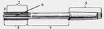 Схема развертки: 1 — режущая часть; 2 — калибрующая часть; 3 — хвостовик; 4 — шейка; 5 — рабочая часть; 6 — зуб.