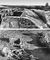 Райковецкое городище: вверху — западная часть вала; внизу — скелеты погибших в детинце людей.