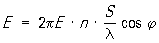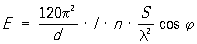 где I — ток в рамке; n — число витков; S — площадь рамки; l — рабочая длина волны; j — угол между плоскостью рамки и направлением на рассматриваемую точку. Эдс E, индуктируемая в приёмной Р. а., вычисляется по формуле