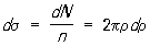 На опыте обычно не измеряют рассеяние индивидуальной частицы, а направляют на мишень из исследуемого вещества пучок одинаковых частиц, имеющих одинаковую энергию, и измеряют количество частиц, рассеянных под данным углом. Число частиц dN, рассеянных в единицу времени на углы, лежащие в интервале J, J + dJ, равно числу частиц, проходящих в единицу времени через кольцо 2prdr×n. Если n — плотность потока падающих частиц (число частиц, проходящих в единицу времени через единичную площадку, перпендикулярную направлению движения частиц в пучке), то dN = 2prdr×n, а сечение упругого рассеяния ds определяется как отношение dN /n и равно