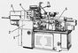 Револьверный станок с горизонтальной осью револьверной головки: 1 — станина; 2 — коробка передач; 3 — шпиндельная бабка; 4 — поперечный суппорт.