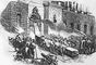 Рабочие и ремесленники взламывают ворота арсенала в Берлине 14 июня 1848. Гравюра 1848.
