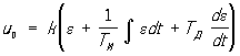 ; здесь k — коэффициет усиления регулятора, Ти и Тд — постоянные времени интегрирования и дифференцирования. Фактическое воздействие u(t) отличается от u0(t) вследствие инерционности регулятора. CAP является динамической системой, процессы в которой описываются дифференциальными, дифференциально-разностными и т. п. уравнениями.
