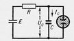 Простейший пример электрических Р. к. — колебания, возникающие при определённых условиях в схеме с газоразрядной лампой (рис. 3), которая обладает свойством зажигаться при некотором напряжении U3 и гаснуть при более низком напряжении Um. В этой схеме периодически осуществляется зарядка конденсатора С от источника тока Е через сопротивление R до напряжения зажигания лампы, после чего лампа зажигается, и конденсатор быстро разряжается через лампу до напряжения гашения лампы. В этот момент лампа гаснет и процесс начинается вновь. В течение каждого периода этих Р. к. происходит два медленных изменения силы тока I при заряде и разряде конденсатора и два быстрых — скачкообразных — изменения тока /c, когда лампа зажигается и гаснет (рис. 4).