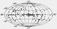 Рис. 3. Распределение известных рентгеновских источников на небе. Использована галактическая система координат, центр Галактики в середине рисунка.